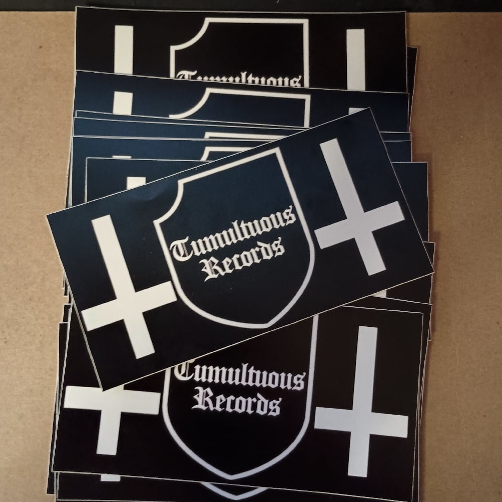 5×3 vinyl sticker with the Tumultuous Records shield logo. Durable and ready to slap anywhere. Add one with your orders!